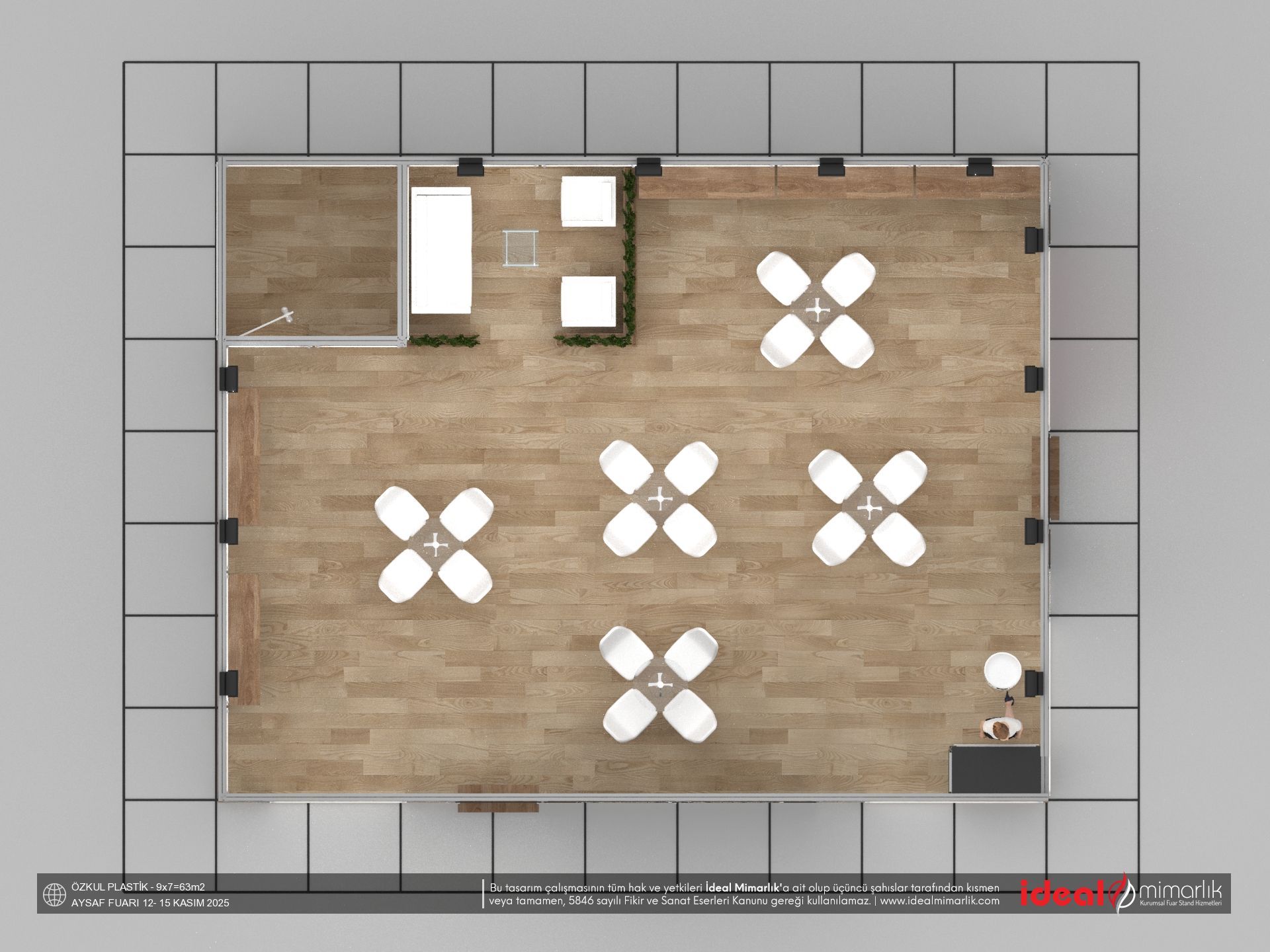 | Stand Ölçüsü (En - Boy) | 9 mt. x 7 mt. = Toplam 63 m2 |